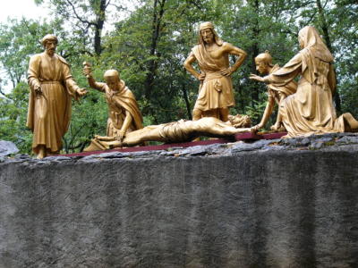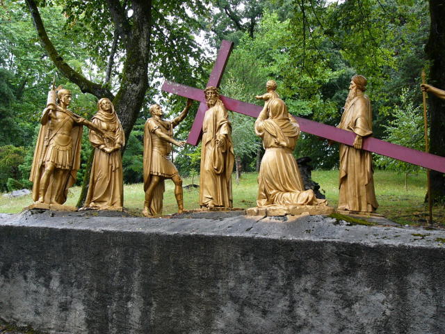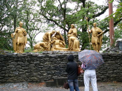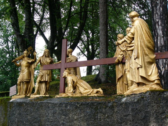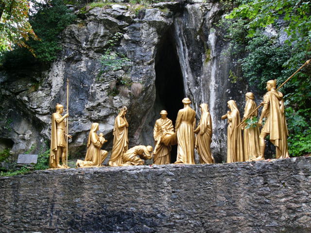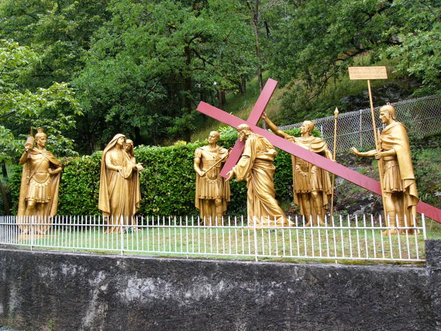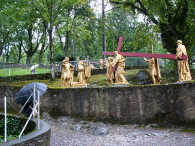 フランス・ルルドの十字架の道行き ここでは人間と等身大の像が飾られていた